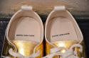 洗い方:箔部分はやわらかいスポンジに中性洗剤をつけて水洗いを推奨致します。ブラシなどで強くこすってしまうと箔が大きく剥がれてしまうので、やさしく丁寧に洗ってください。箔部分の汚れがどうしても気になる場合は軽くなでるように洗い、すすぐ時は箔をこすらないようにご注意ください。スニーカーの内側とインソールに関しましては、通常のスニーカーを洗う程度の処理をして頂いて問題ございません。