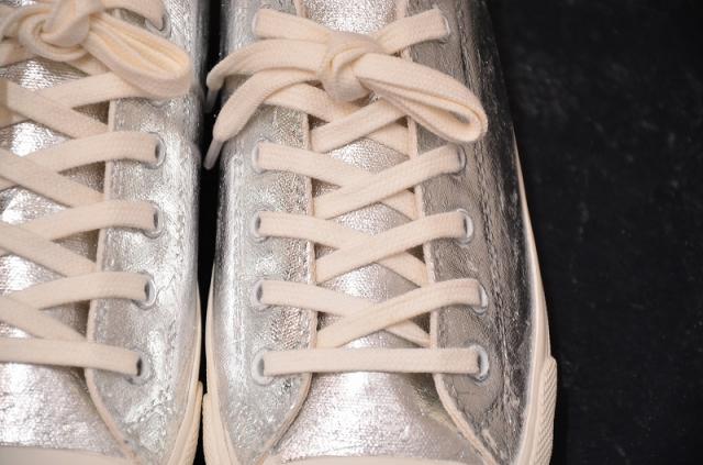 洗い方:箔部分はやわらかいスポンジに中性洗剤をつけて水洗いを推奨致します。ブラシなどで強くこすってしまうと箔が大きく剥がれてしまうので、やさしく丁寧に洗ってください。箔部分の汚れがどうしても気になる場合は軽くなでるように洗い、すすぐ時は箔をこすらないようにご注意ください。スニーカーの内側とインソールに関しましては、通常のスニーカーを洗う程度の処理をして頂いて問題ございません。