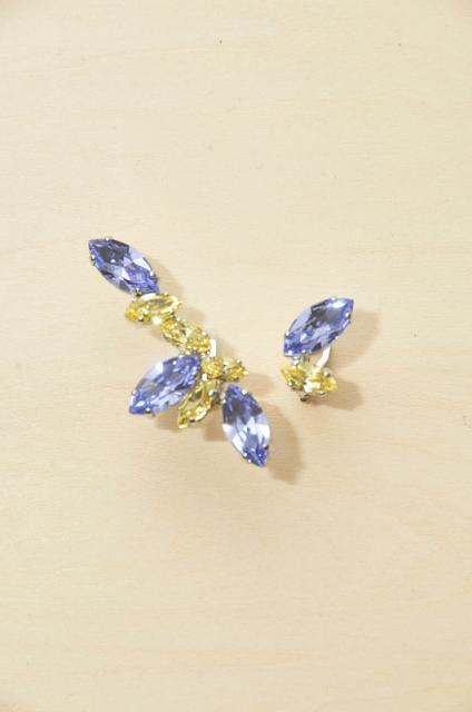 スワロフスキーを熟練した職人が「寄せもの」と呼ばれる技法で、1つ1つ丁寧に仕上げたイヤリング。これまでのpetite robe noireのラインナップになかった新鮮な色の組み合わせ。